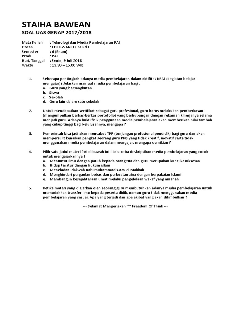 1 from Maybe you would like to learn more about one of these? Soal uas mata kuliah materi pai. Check spelling or type a new query. We did not find results for: